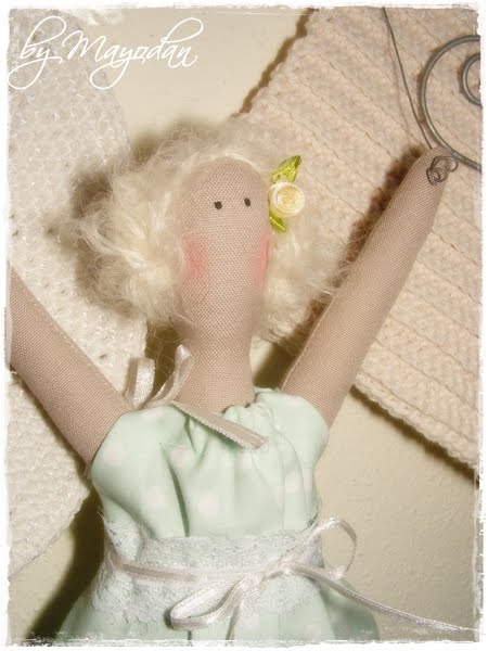Ich habe die Tilda-Mädchen mit einem Drahtbügel versehen, damit man sie als Hängerchen benutzen kann.