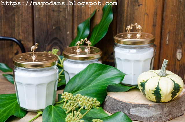 Schöne Marmeladengläser muss ich einfach aufheben, die kann ich einfach nicht entsorgen. Da habe ich immer den Hintergedanken im Kopf, dass man ja noch etwas daraus machen könnte. Uns so habe ich sie zu Behältern für meine Raumduftverbesserer umgestaltet.